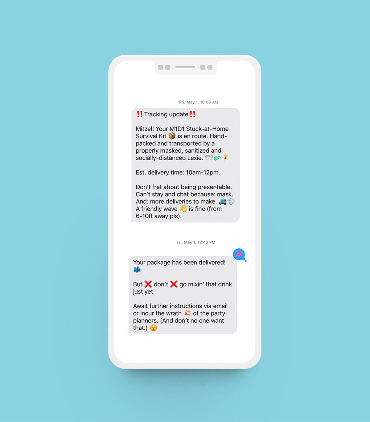 Each kit was hand-delivered by a masked-and-gloved teammate (shoutout Lexi) with live tracking updates so everyone could follow the fun in real time.